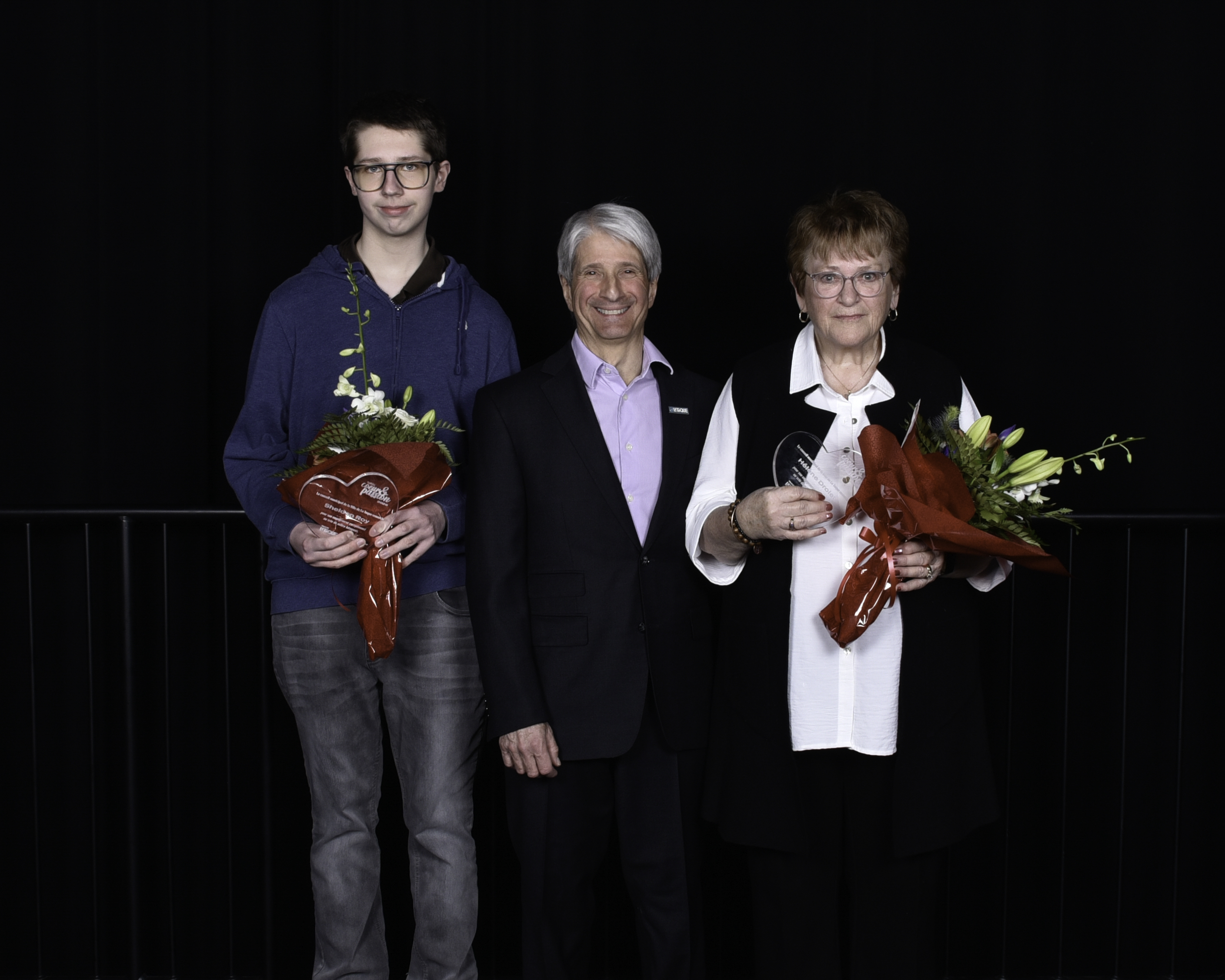 Devant une salle comble de 480 personnes, réunies pour l'occasion dans la salle Vincent-Spain du Complexe culturel Félix-Leclerc, cette soirée a permis à l'équipe municipale de rendre hommage à madame Hélène Drolet qui a reçu le prix de Bénévole émérite 2026, ainsi qu'à Sheldon Roy qui a reçu le prix de Jeune relève bénévole 2026.