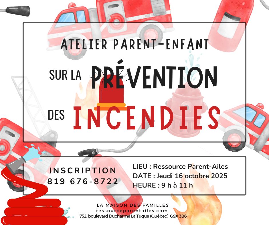 Atelier PARENT-ENFANT sur la prévention des incendies - 9 h à 11 h