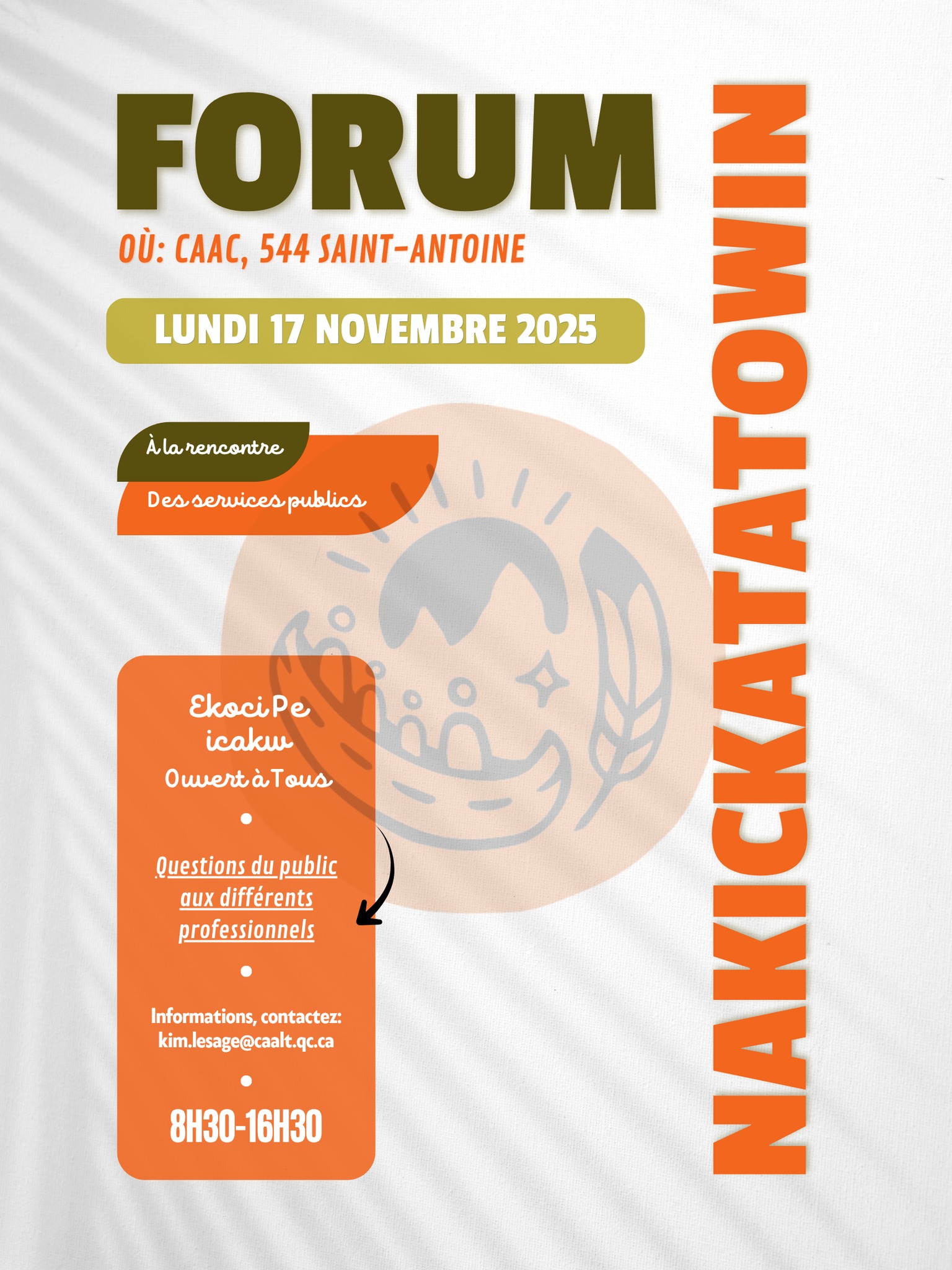 Dans le cadre du Forum Nakickatatowin, nous vous invitons à poser vos questions aux intervenants participants au panel :