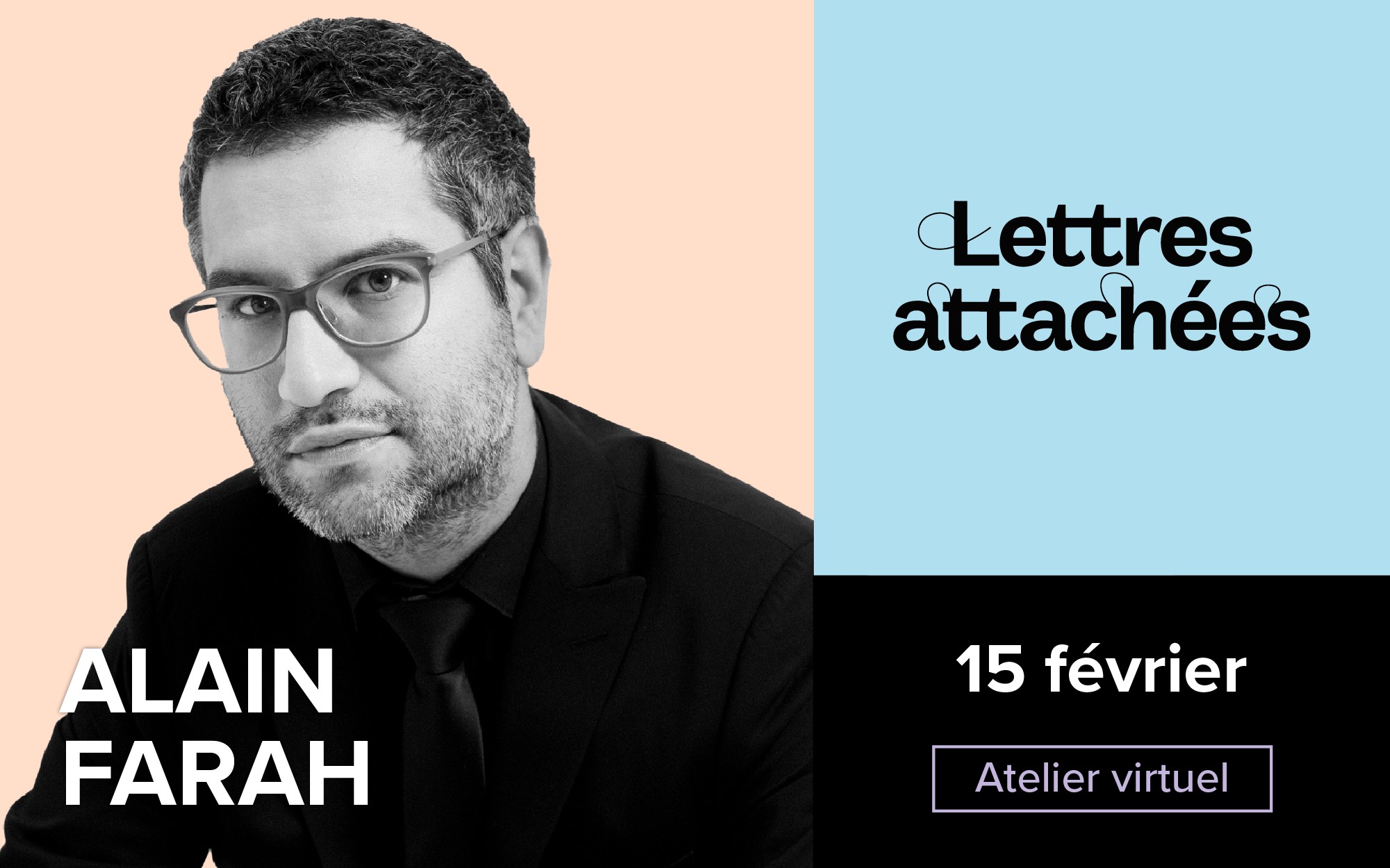 Participe à un atelier créatif en groupe où le romancier Alain Farah, en direct de Montréal par visioconférence, te proposera des exercices d'écriture pour créer un court texte inspiré d'une scène d'un de ses romans.
