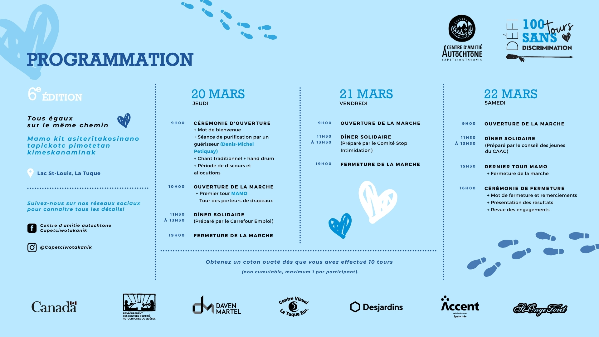 Le centre d'amitié Autochtone vous invite au défi 100 tours sans discrimination au Centre Sakihikan du petit Lac St-Louis. Un évènement ouvert à toute la population et gratuit.