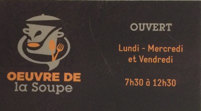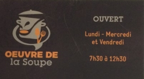 Vous pouvez profiter de l'oeuvre de la soupe dès 7 h 30 jusqu'à 12 h 30 tous les lundis, mercredis et vendredis.
