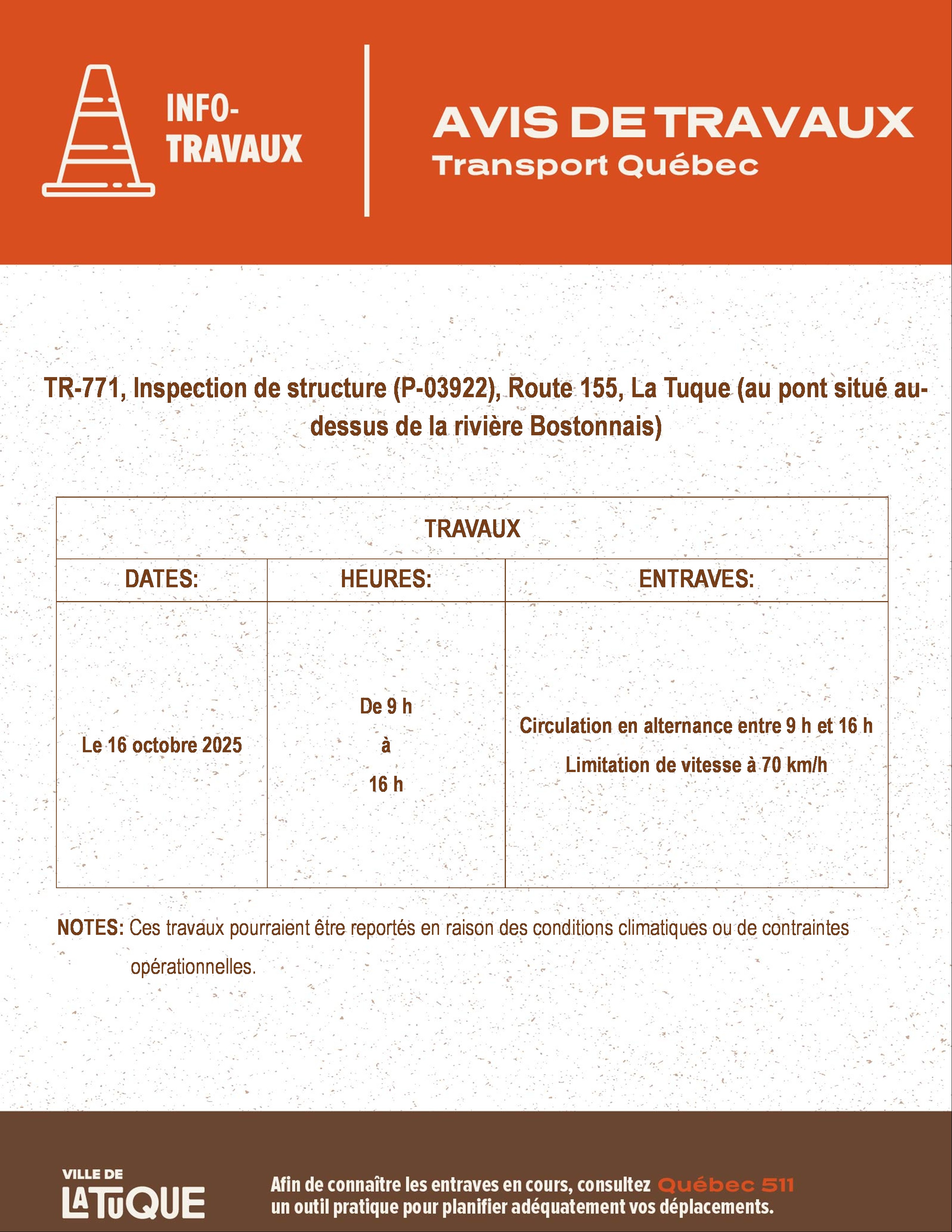 TR-771, Inspection de structure (P-03922), Route 155, La Tuque