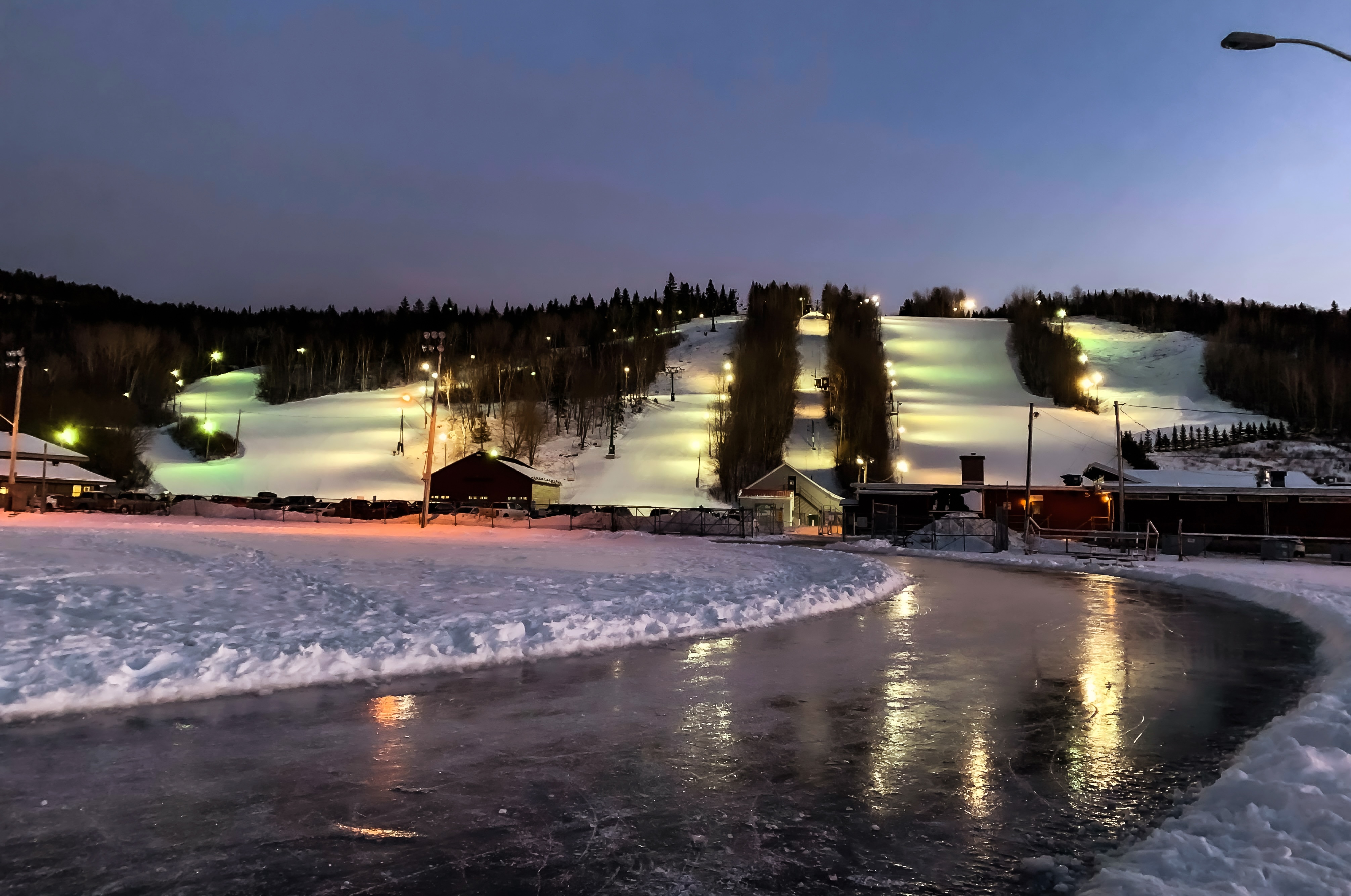 En hiver, vous y trouverez l'anneau de glace géante. C'est un endroit prisée où les amateurs de patinage peuvent profiter d'une belle surface glacée au pied des pentes de ski. Cet anneau de glace, avec sa vue direct sur la montagne, en fait un lieu parfait pour profiter des activités extérieures gratuitement durant la saison froide.