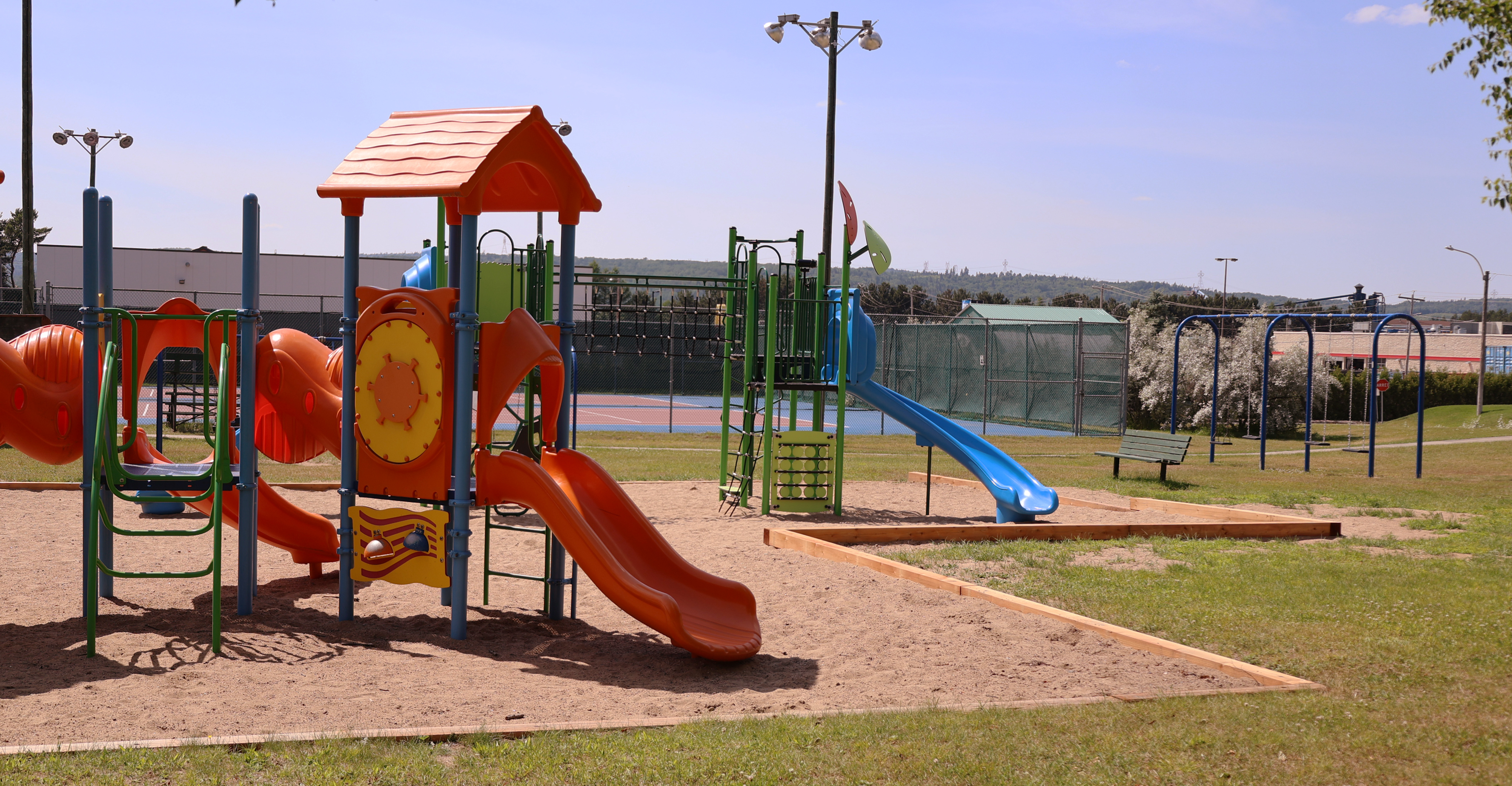 En plus des modules de jeux, d'un skate park, d'un terrain de tennis, de pétanque et de pickleball, on y retrouve des jeux d'eau et une piscine extérieure publique dont l'accès est gratuit.