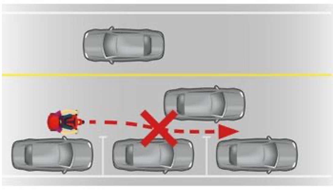 - entre un véhicule circulant dans la même voie que vous et un véhicule stationné à droite ou à gauche de cette voie.