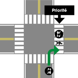Si vous voulez tourner à droite, vous devez d'abord céder le passage aux piétons, aux cyclistes et aux autres utilisateurs d'une AMM qui traversent la chaussée vers laquelle vous vous dirigez.