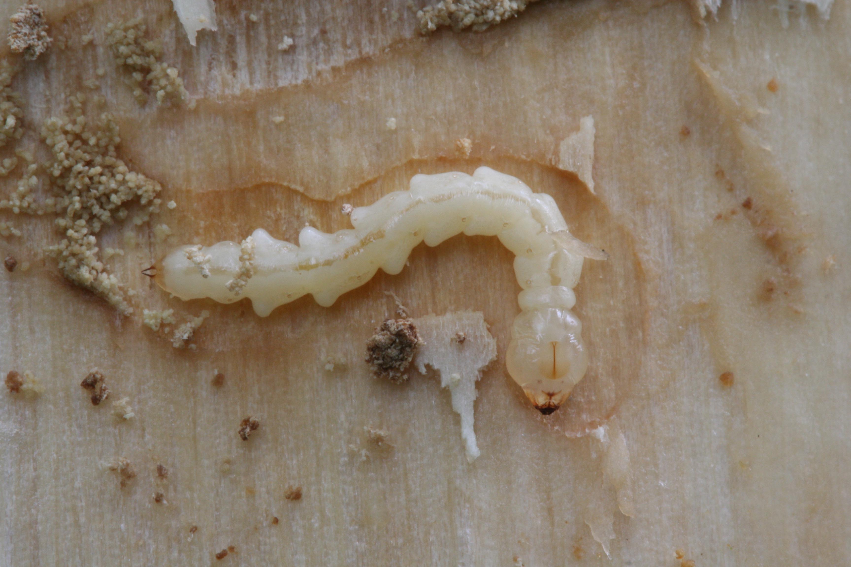 Les larves sont les principales responsables de ces dommages. Les galeries qu'elles creusent sous l'écorce empêchent la sève de circuler et d'atteindre la cime de l'arbre, qui est la première à dépérir.