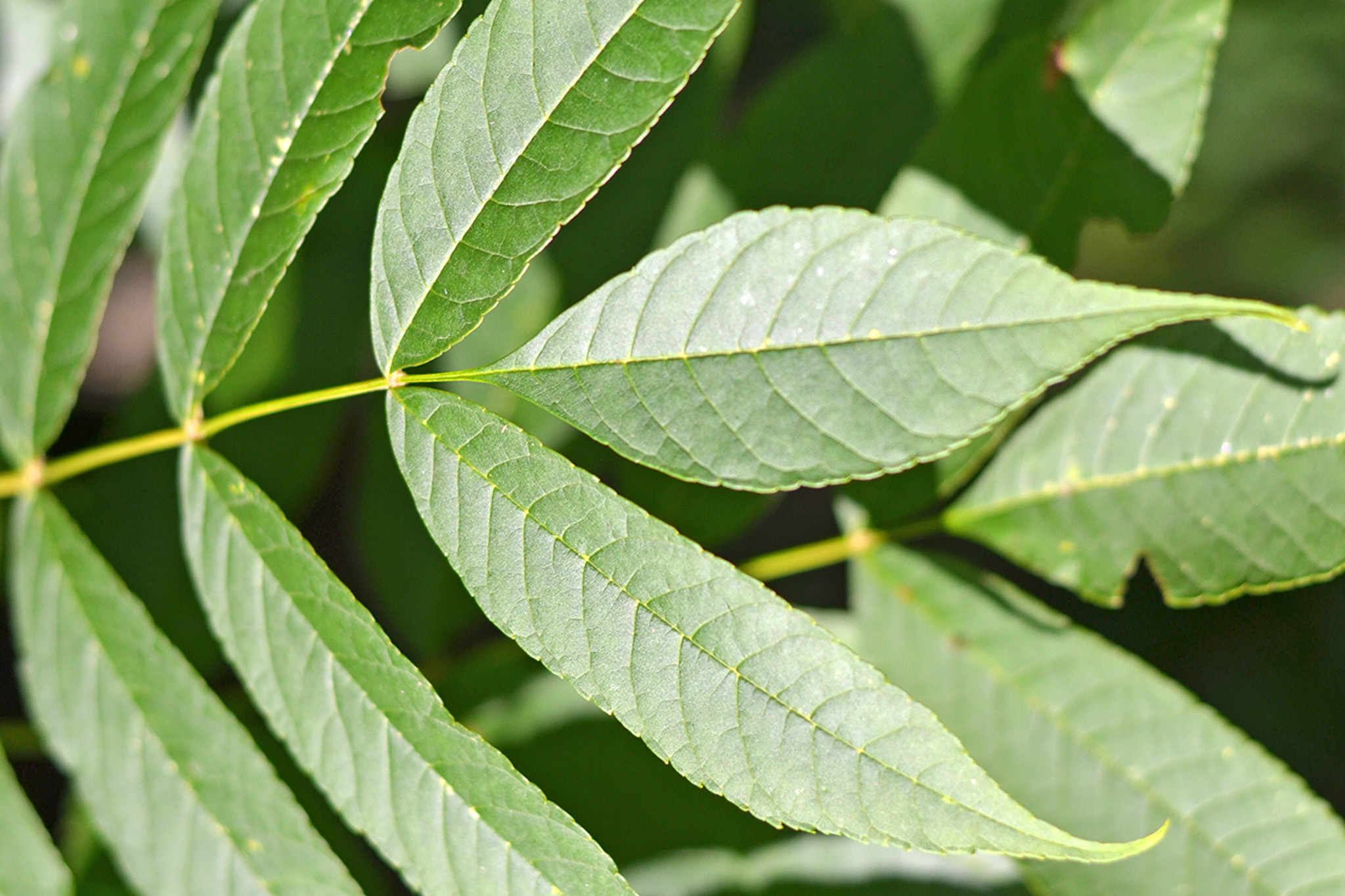 - Les feuilles sont composées d'un nombre impair de folioles, qui sont en fait de petites feuilles finement dentelées. Chaque feuille est composée de 5 à 11 folioles;
