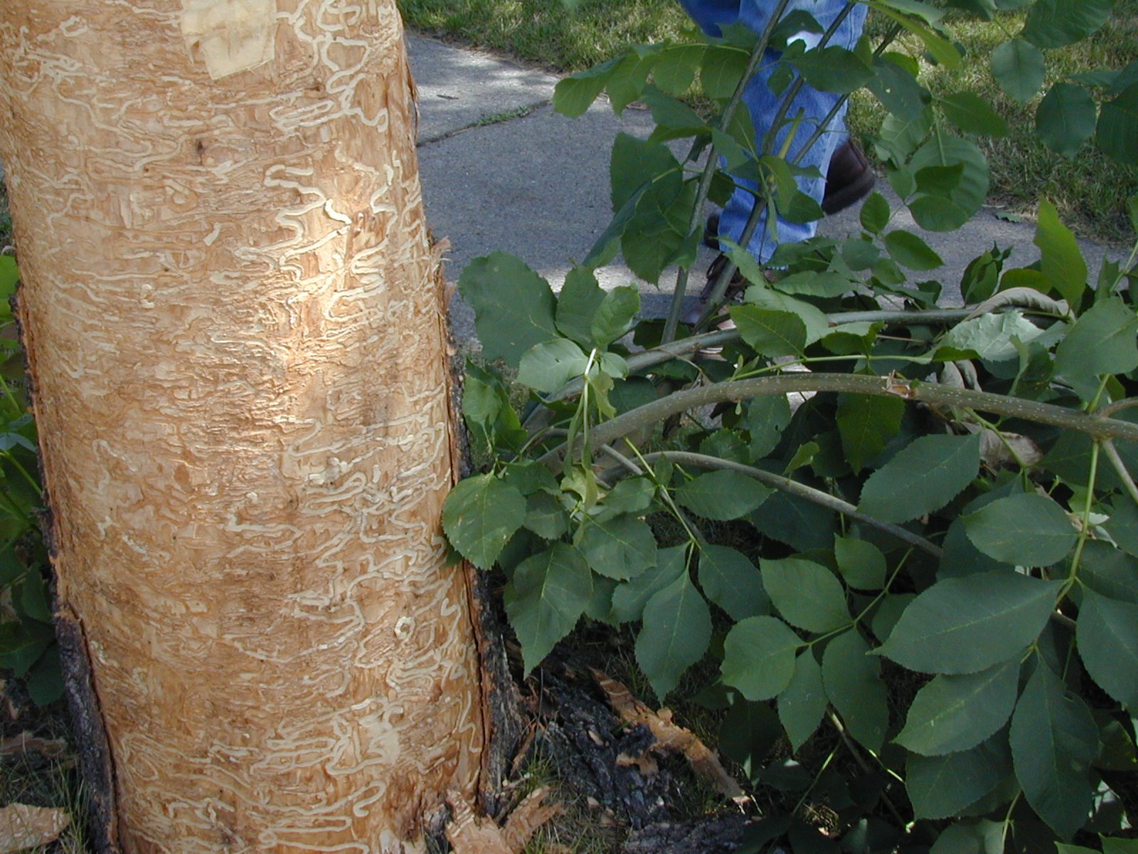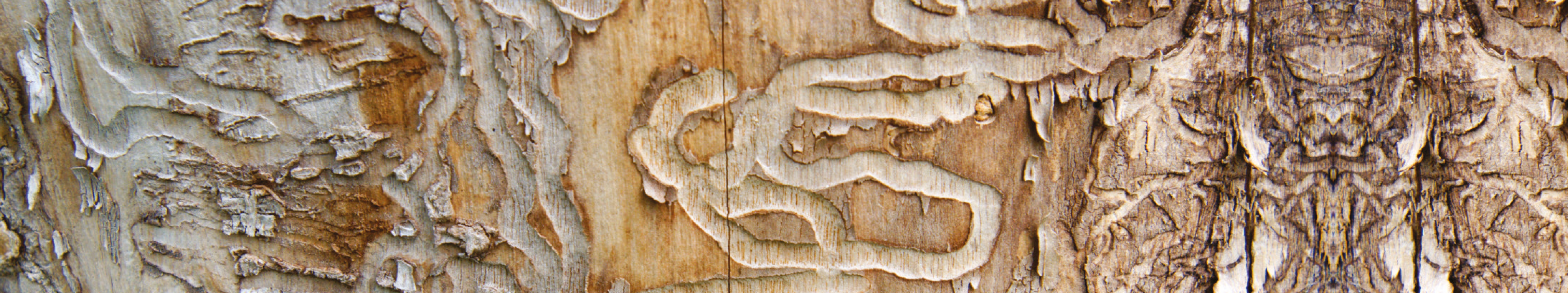 - Galeries sous l'écorce bloquant la sève du frêne de circuler.