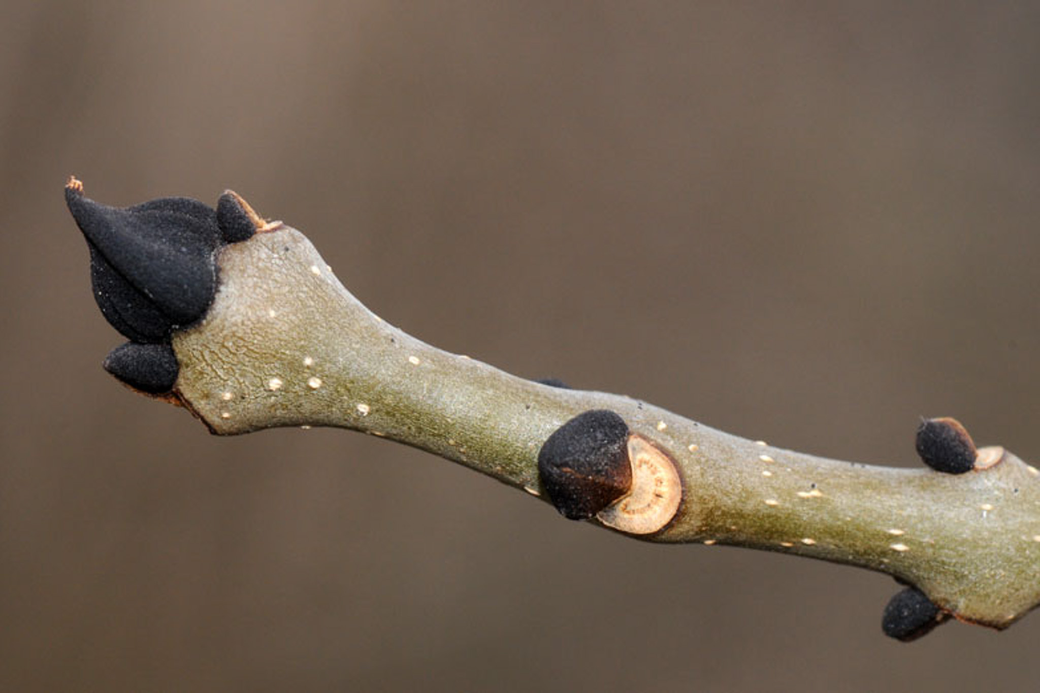 - Les bourgeons terminaux des frênes ont une forme largement pyramidale. Ils sont composés d'une à trois paires d'écailles douces au toucher;