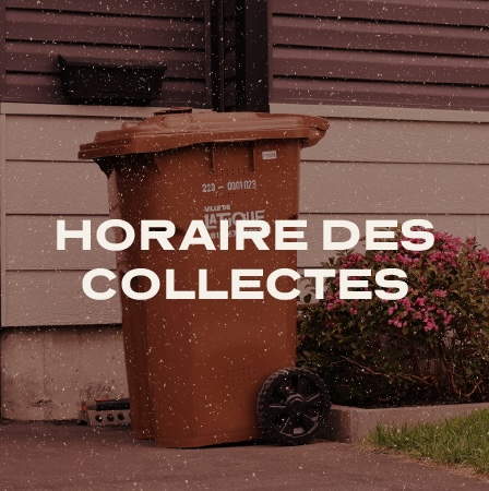Avec l'implantation du bac brun pour le compostage, la cueillette des déchets (bac vert) a lieu maintenant à toutes les trois semaines. La cueillette des matières recyclables (bac bleu) a lieu à toutes les deux semaines et la collecte des matières compostables (bac brun) a lieu aux deux semaines du mois de novembre au mois d'avril, puis chaque semaine du mois de mai au mois d'octobre.
